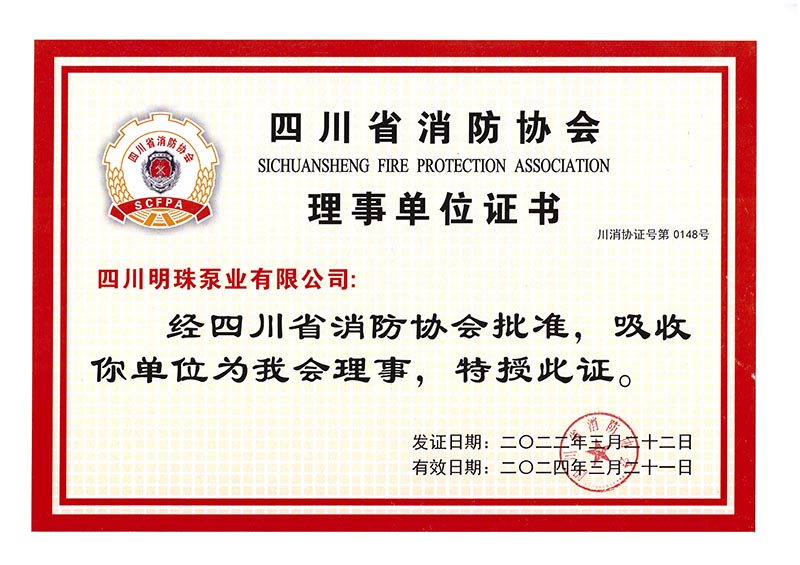 恭贺我司成为四川省消防协会理事单位,荣获证书,消防增压泵组及电控柜生产厂家!