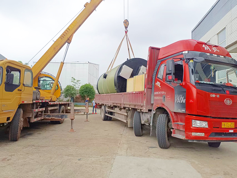 我司玻璃钢一体化雨污水提升泵站装车发货市政工程生物城环境改造项目