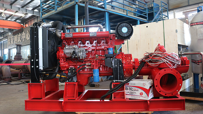 我司柴油机中开消防泵组生产检测完成应用喷淋灭火建设
